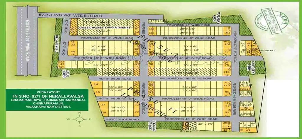 VUDA Approved || Blacktop Roads || Avenue Plantation || Children Parks || 100% Vasthu || Electricity with Solar Street Lighting || Gated Community || Arch || Drainage system || Compound Wall || Jogging Track || Sai Baba Temple